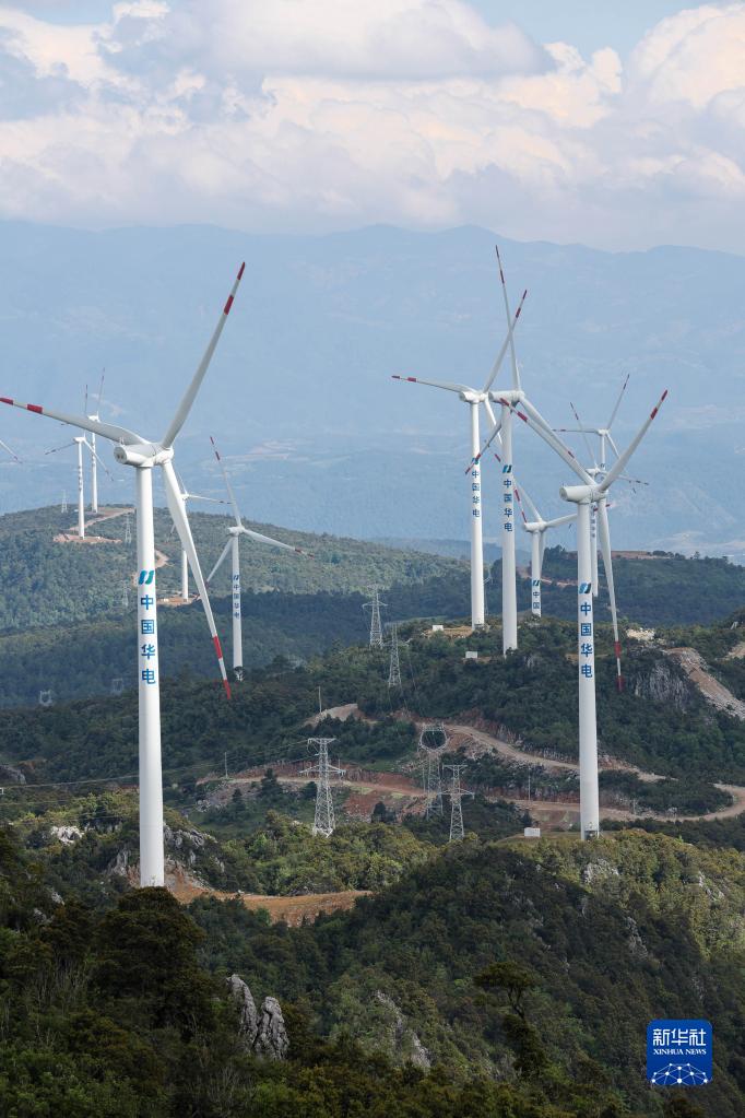 这是位于四川盐源县棉桠镇的四川盐源华电新能源有限公司的凉风坳风电场一角(6月20日摄)。