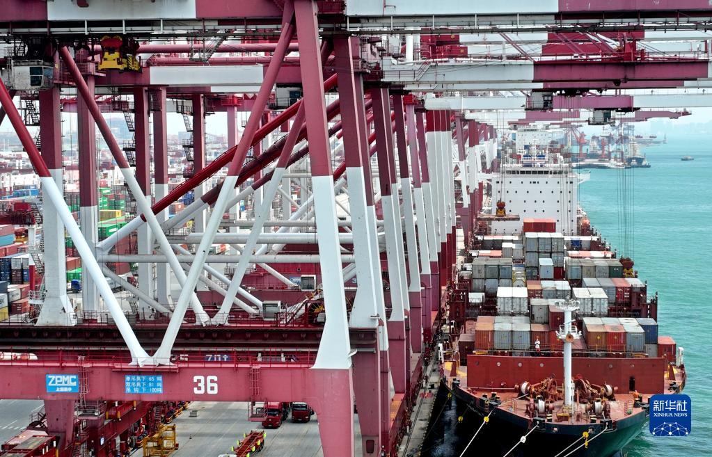 新华全媒+丨繁忙航线:平均每两分钟就有金砖国家货物装卸的青岛港