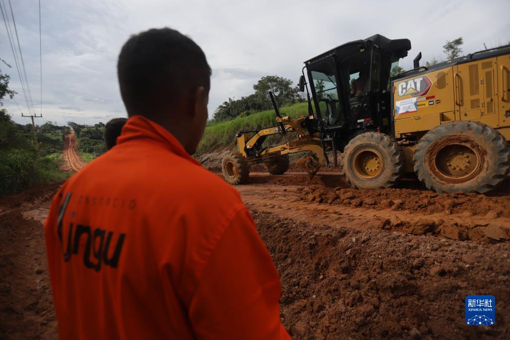 5月18日,在巴西帕拉州巴西诺沃,一名施工人员站在工程机械旁。