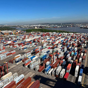 这是4月21日拍摄的南非德班港集装箱码头(手机拍摄)。