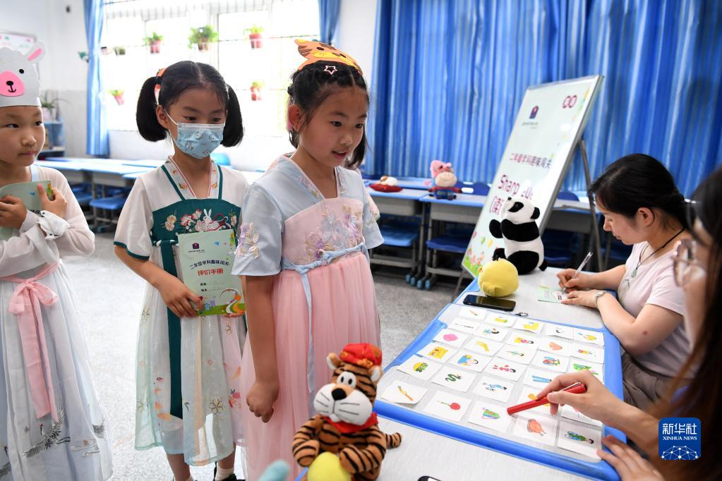 6月22日,合肥市建平实验小学南艳分校学生在参加期末趣味闯关活动。