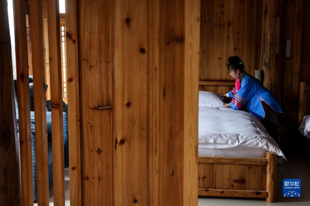 6月22日,王仙桃在民宿内整理客房。 新华社记者 欧东衢摄