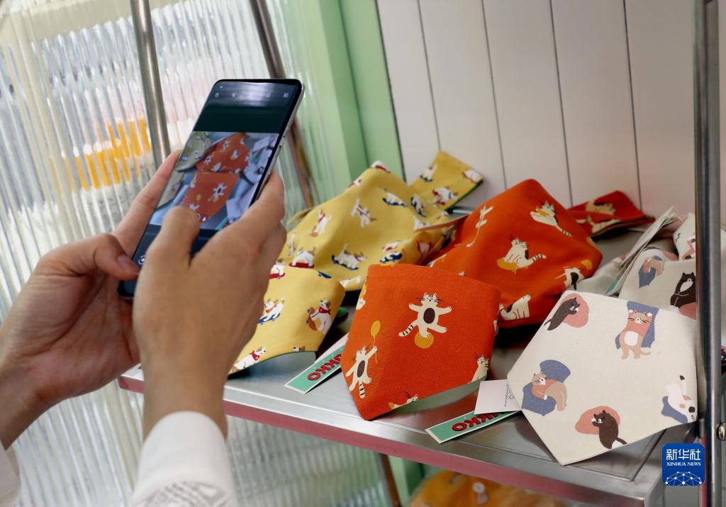 6月17日,姚家谆给店内的宠物服饰拍照。她和一位设计师朋友设计开发了手工宠物服饰,在店中售卖。 新华社记者 刘颖 摄