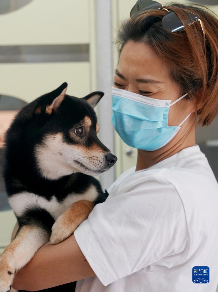 姚家谆和她的爱犬“茶可”(6月15日摄)。 新华社记者 刘颖 摄