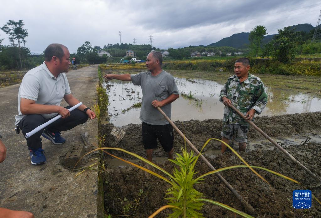 6月22日,在杭州市临安区昌化镇白牛村,昌化镇农业农村办的工作人员(左一)询问农民关于当地“非粮化”整治的情况。