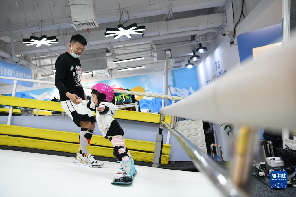 今年4岁的江语星家住安徽合肥,在父母的影响下,她接触并喜欢上了滑雪。2021年1月起,江语星开始在合肥一家滑雪馆系统学习滑雪。这项运动不仅增强了江语星的身体素质,也让她懂得热爱就要去坚持。“汗水就是滑雪的奖励啊!”一次滑雪训练后,江语星笑着说。