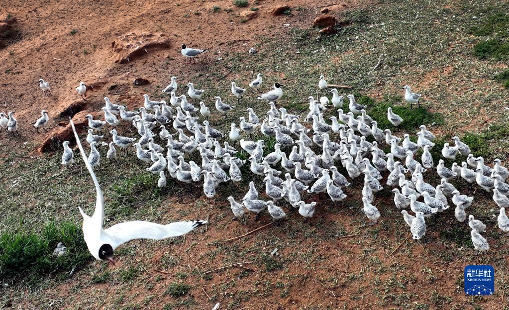 红碱淖鸟岛上栖息的遗鸥(6月21日摄,无人机照片)。