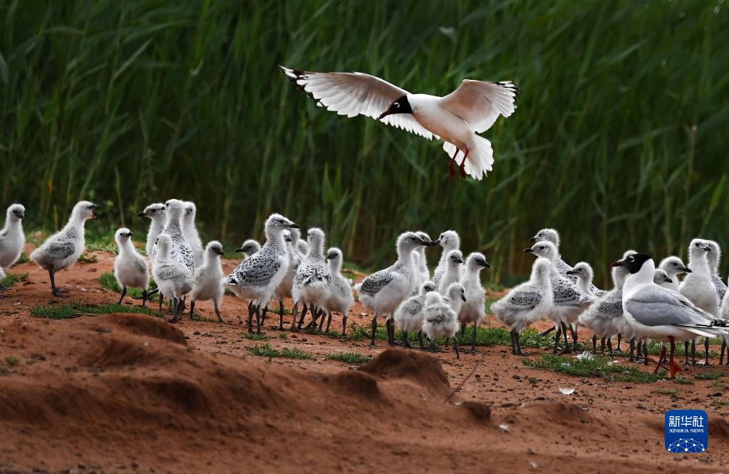 一只遗鸥成鸟捕食归来(6月21日摄)。