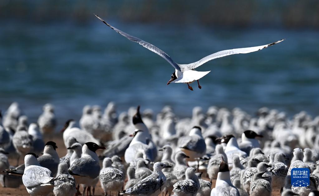 红碱淖鸟岛上飞翔的遗鸥(6月22日摄)。