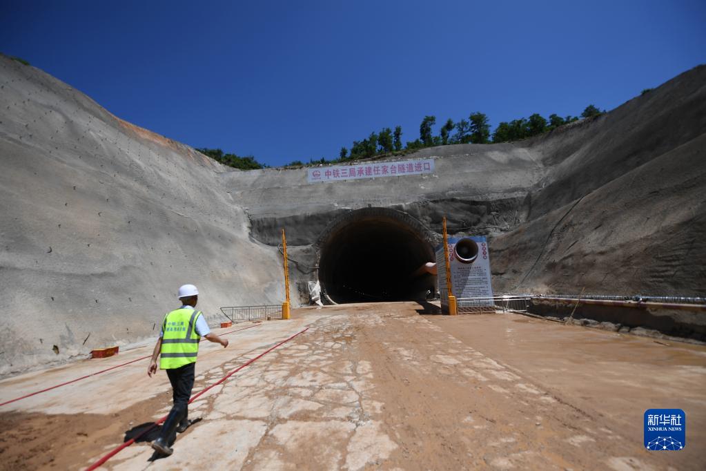 6月23日,中铁三局施工人员走向西延高铁任家台隧道。