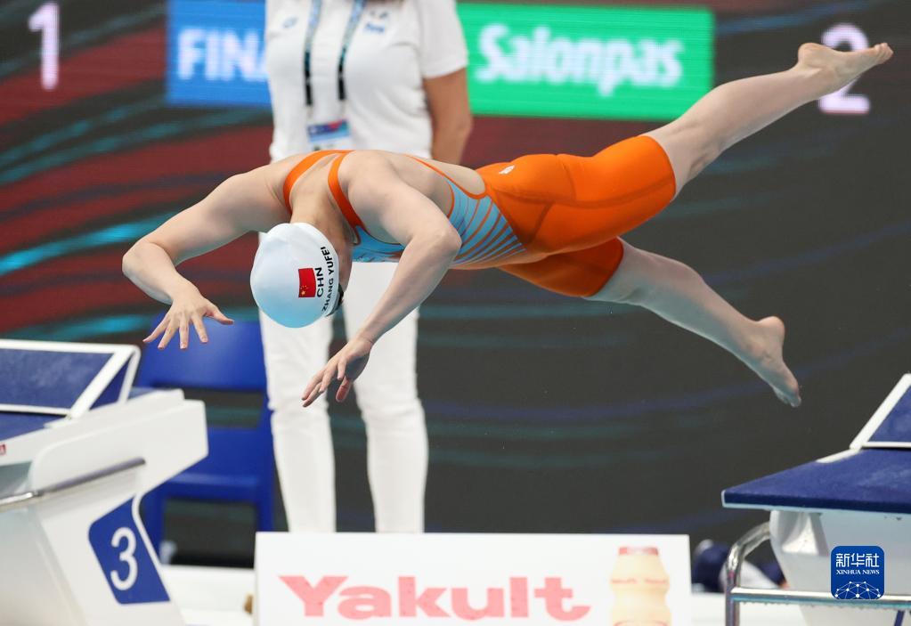 当日,在匈牙利布达佩斯举行的2022年世界游泳锦标赛女子50米蝶泳半决赛中,中国选手张雨霏晋级决赛。