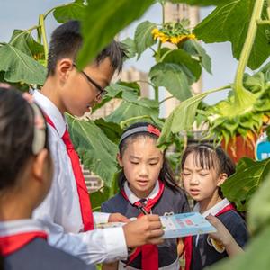 近日,在重庆两江新区星湖学校教学楼顶的向日葵园中举行了一堂沉浸式的融合课和向日葵全融合趣评嘉年华。在老师的带领下,不同年龄段的学生们完成了赏葵、言葵和探葵等任务。