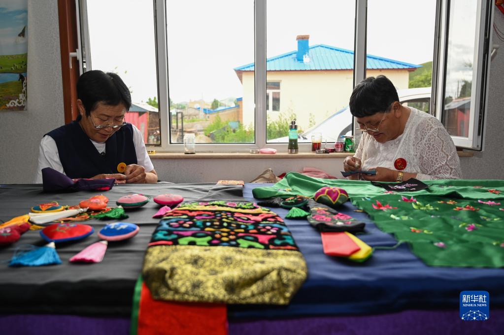 6月23日,在萨日朗巾帼民族手工艺合作社,绣娘在绣制手工艺品。