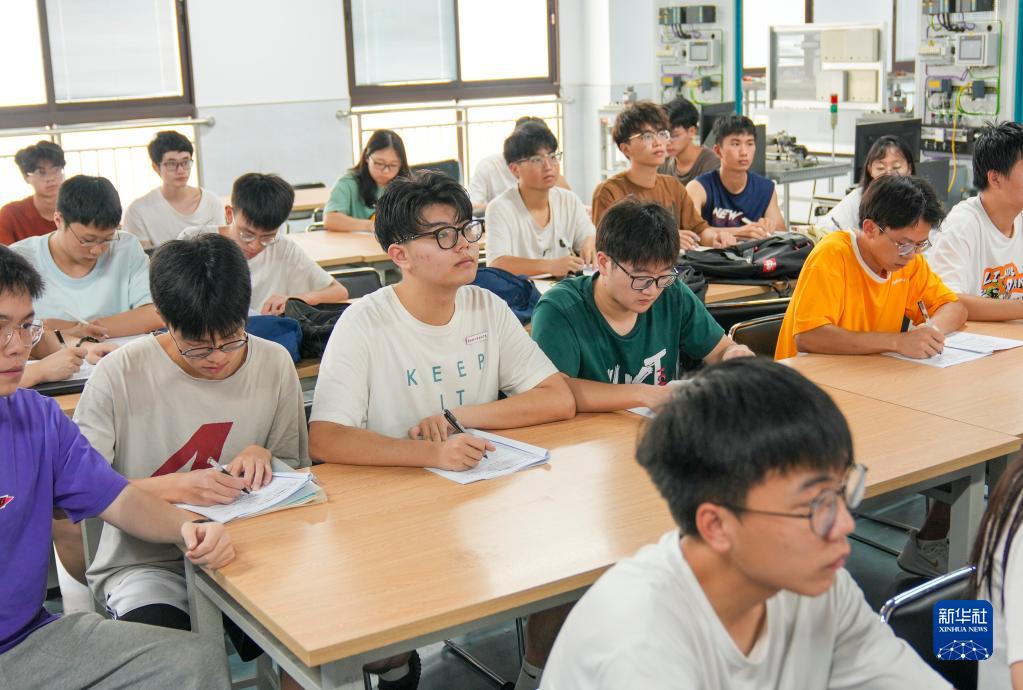 6月21日,重庆电子工程职业学院课堂上,李晨(中排左三)听老师讲课。