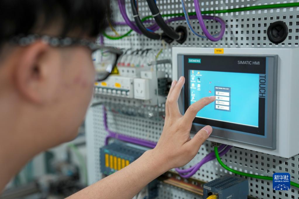 6月21日,在重庆电子工程职业学院的实训室,李晨在进行课堂实训操作。