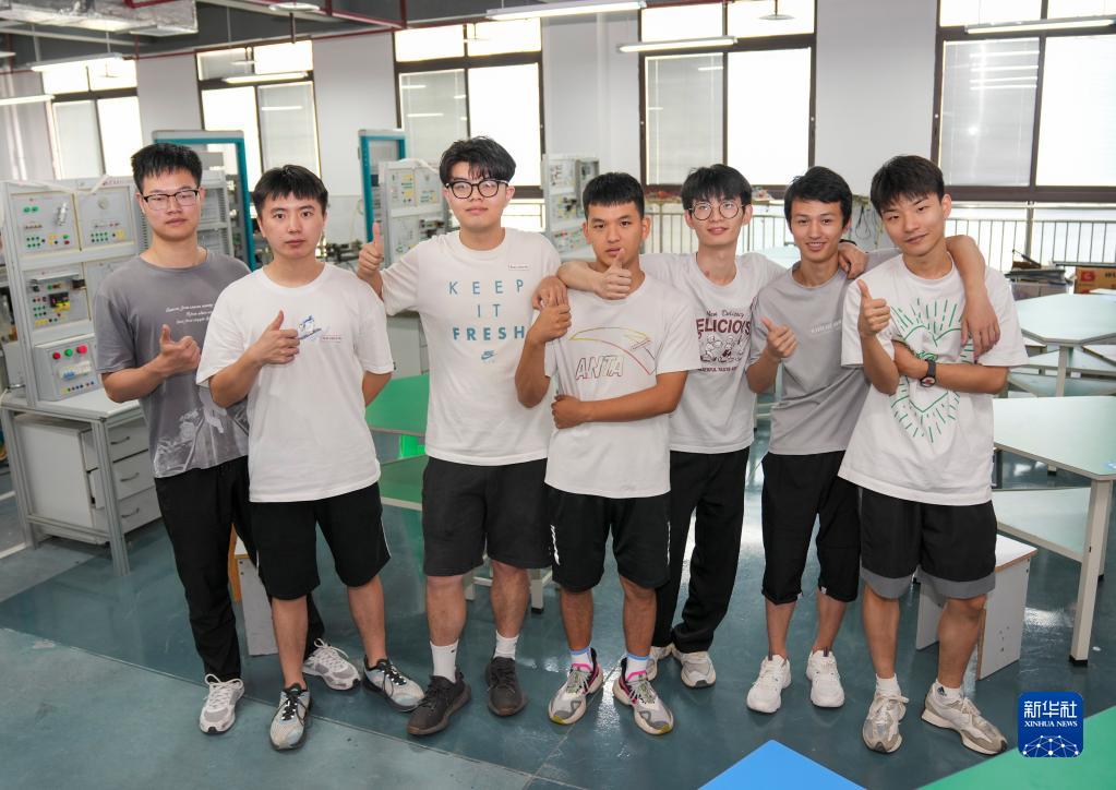 6月21日,重庆电子工程职业学院在校学生李晨(左三)和他的部分创业团队成员。