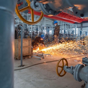 6月23日,工人在黑龙江联顺生物科技有限公司绿色生物医药产业项目工地内施工作业。