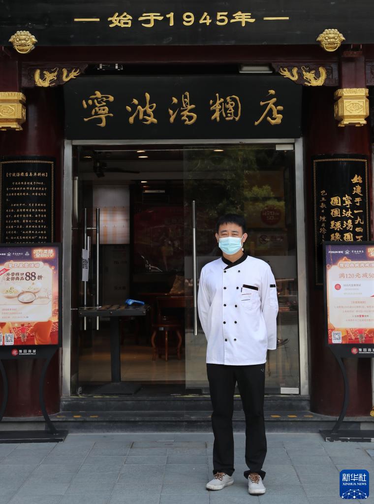徐正留在宁波汤团店门口(6月22日摄)。新华社记者 刘颖 摄