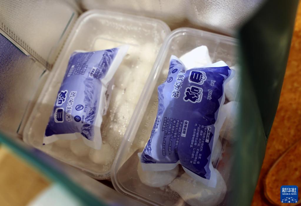 6月22日,徐正留打包半成品时放入冰袋,以应对炎热的天气。新华社记者 刘颖 摄