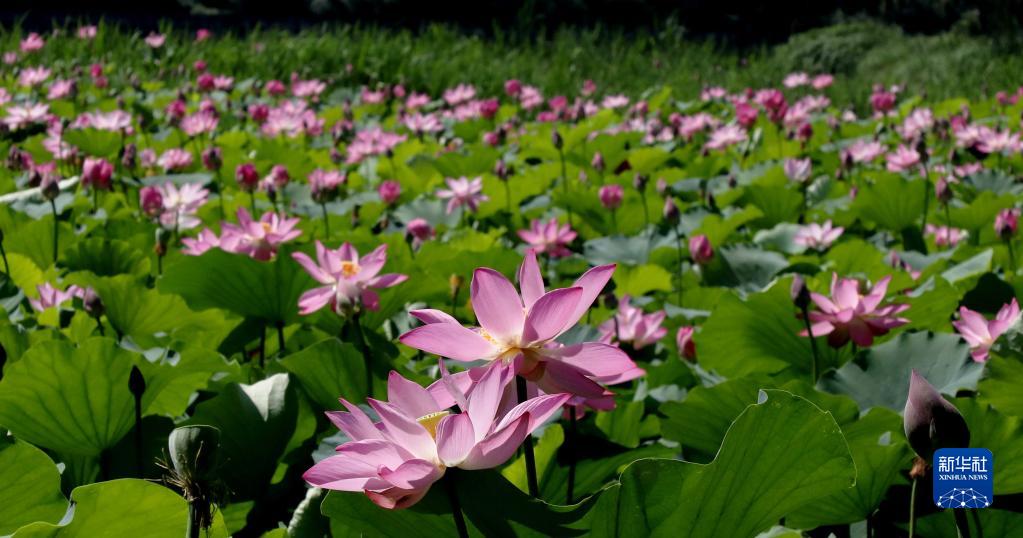 夏日,荷塘里荷花绽放,摇曳生姿,暗香浮动,满池叠翠,为炎炎夏日增添了一抹亮色和几许诗意。