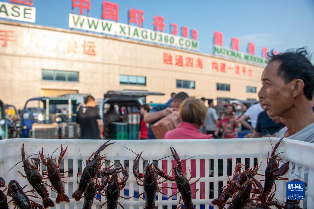 6月25日,虾农在湖北潜江市的中国小龙虾交易中心售卖小龙虾。