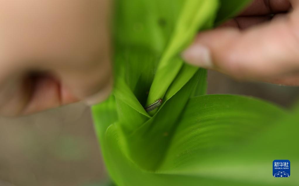 6月23日,高月在达牛镇茨于村黑土地质量监测点观察玉米生虫情况。