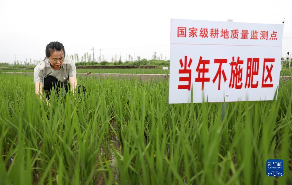 6月23日,高月在富家镇四台子村黑土地质量监测点查看水稻分蘖情况。