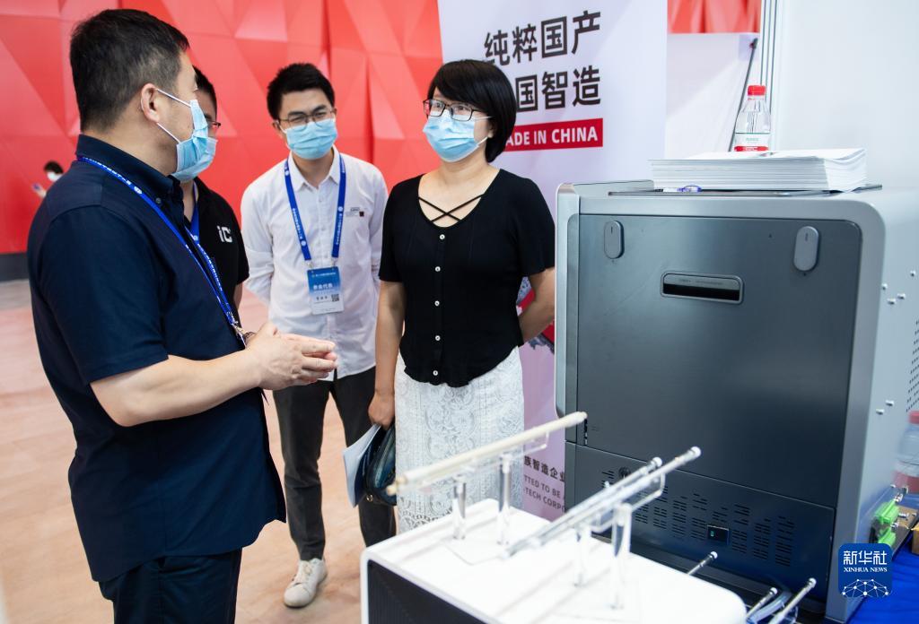 6月26日,在长沙北辰国际会议中心,观众(右一)在第二十四届中国科协年会成果展上了解展品。