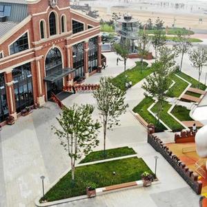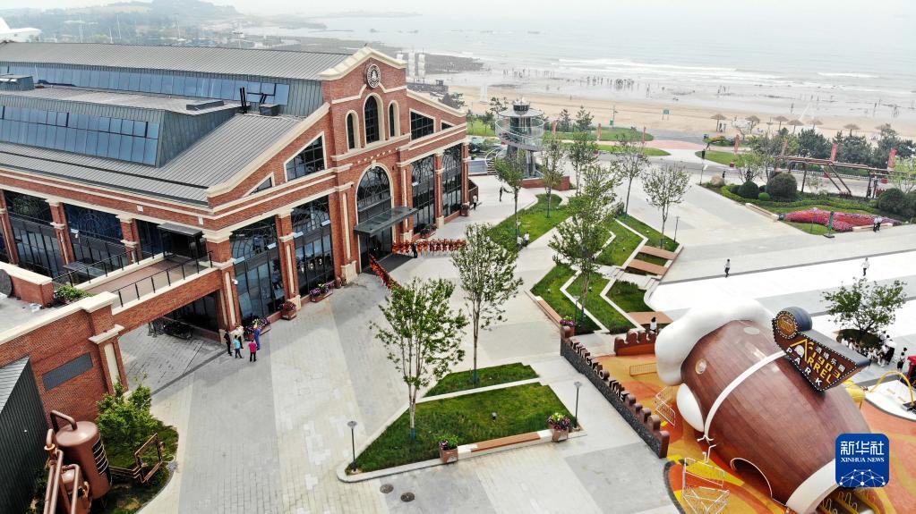 这是位于青岛市西海岸新区金沙滩海边的“青啤时光海岸精酿花园”(6月26日摄,无人机照片)。