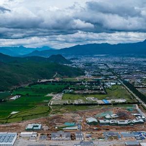 这是位于玉龙雪山脚下、正在建设中的丽江城市综合轨道交通项目一期工程(6月26日摄,无人机照片)。