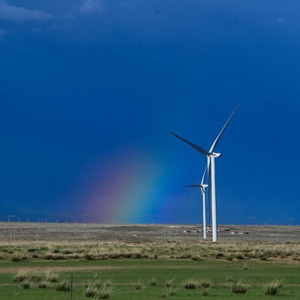 这是6月26日在青海省海南藏族自治州共和县拍摄的风力发电机。