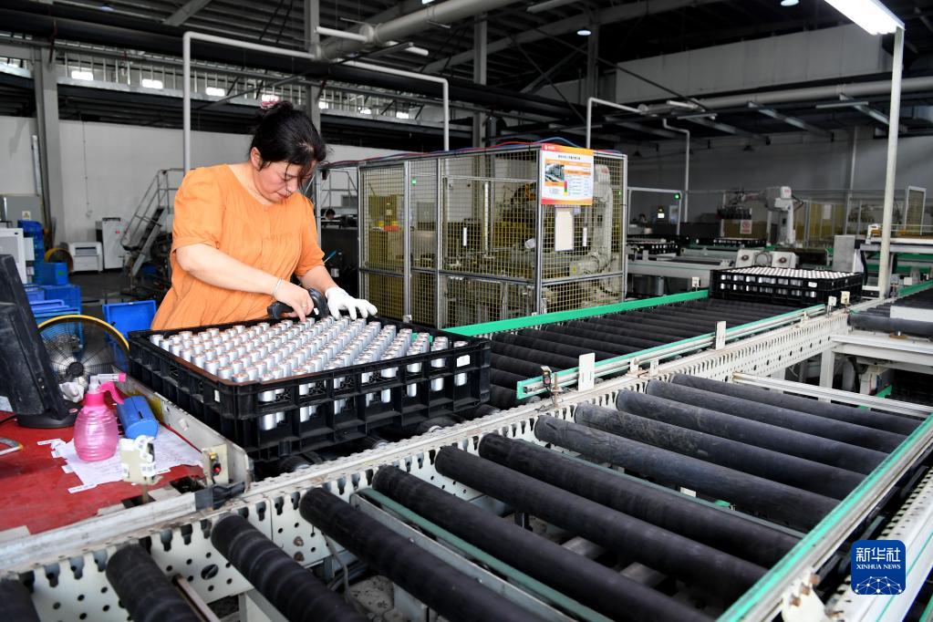 6月21日,工作人员在位于庐江高新区的国轩新能源(庐江)有限公司电池车间内忙碌。