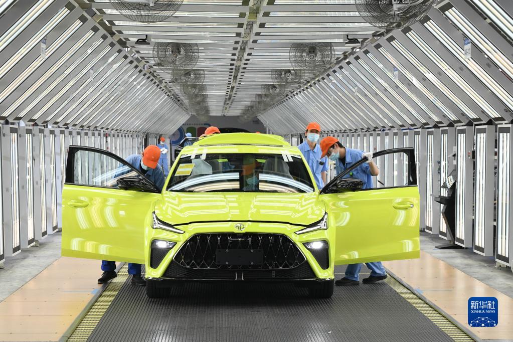 6月7日,上汽集团乘用车宁德基地总装车间,新车有序下线。