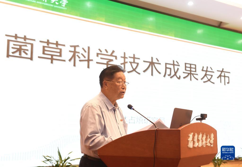6月28日,菌草技术发明人、国家菌草工程技术研究中心首席科学家林占熺在发布会上介绍巨菌草新种鉴定等研究成果。