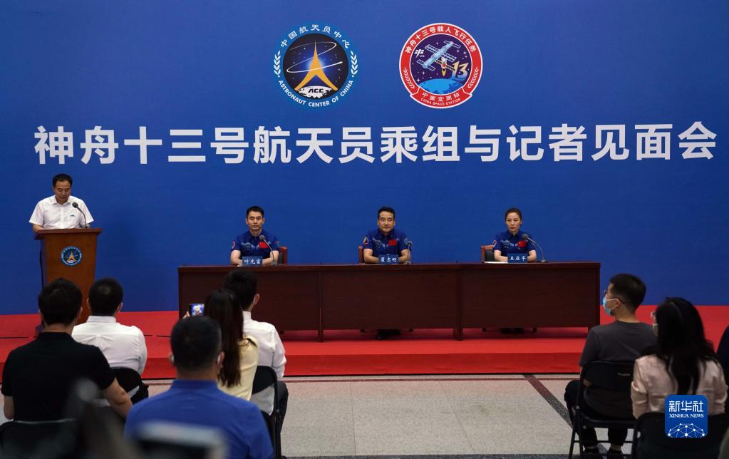 6月28日下午,神舟十三号航天员乘组在北京航天城与媒体和公众正式见面,这是他们天外归来74天后的首次公开亮相。