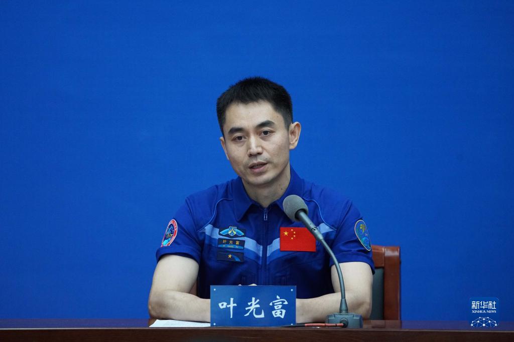 6月28日,神舟十三号航天员叶光富在北京航天城回答记者提问。