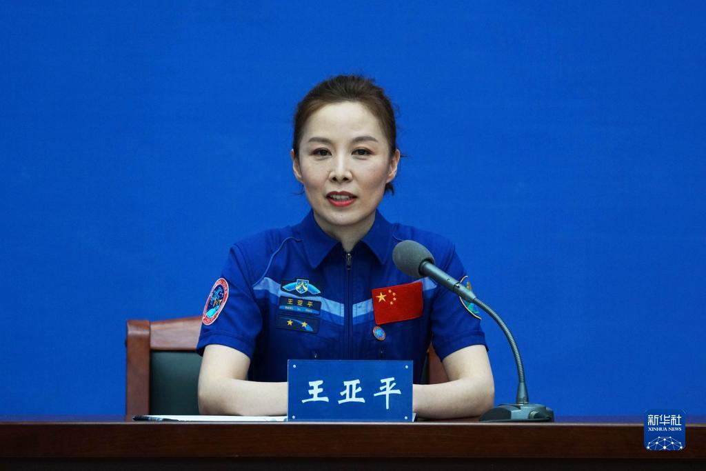 6月28日,神舟十三号航天员王亚平在北京航天城回答记者提问。