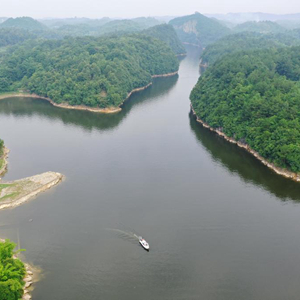 这是位于贵阳市花溪水库的通水工程取水口(6月29日摄,无人机照片)。