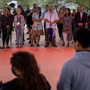 6月28日,人们在美国得克萨斯州圣安东尼奥市悼念货车惨案死亡移民。