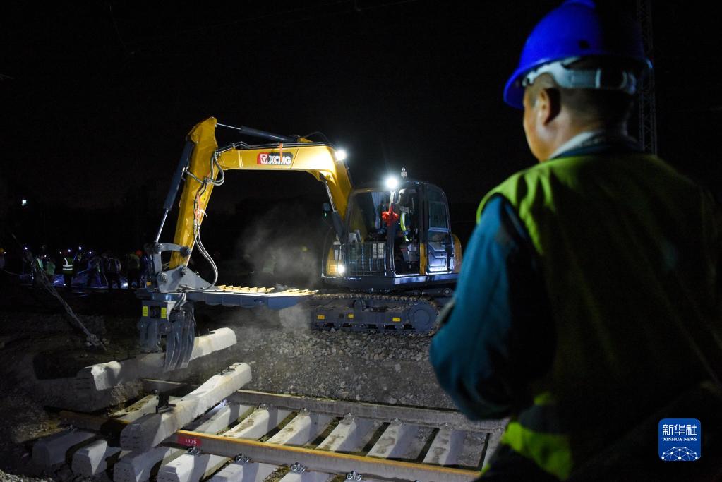 6月29日,在乌将铁路地窝铺车站扩能改造施工现场,中铁一局的施工人员在抽换轨枕。
