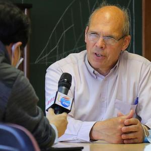 4月29日,在比利时埃诺省阿特市的农业与农业工程中心试验农场,比利时知名农业专家弗朗索瓦·塞尔内尔接受新华社记者专访。