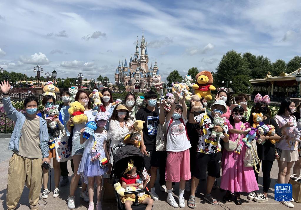 6月30日,游客在上海迪士尼乐园里合影留念。新华社记者 任珑 摄