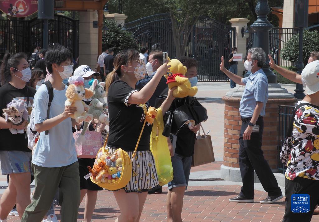 6月30日,上海迪士尼工作人员在迪士尼乐园门口欢迎游客入园。新华社记者 任珑 摄