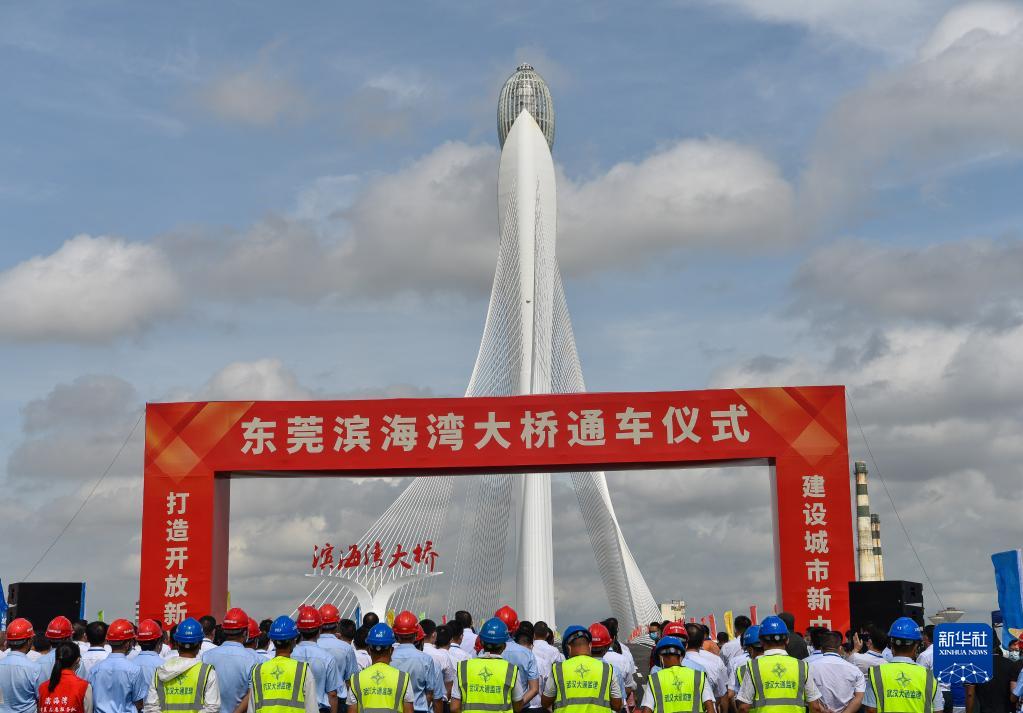 6月30日,由中铁大桥局承建的广东东莞滨海湾大桥正式通车。滨海湾大桥地处被定位为粤港澳大湾区协同发展特色平台的东莞滨海湾新区, 以东莞市花玉兰花为创意元素,上跨磨碟河入海口,为独塔扭索面斜拉桥,全长973.6米。
