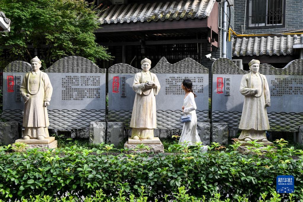6月29日,在广西桂林,游客在漓江边一处文化长廊内观看历史人物简介。