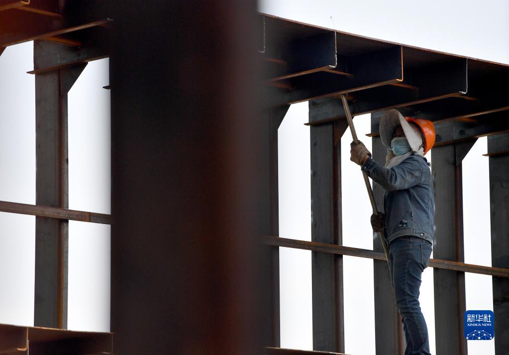 6月30日,在淮滨县造船产业集聚区,工人在进行除锈作业。