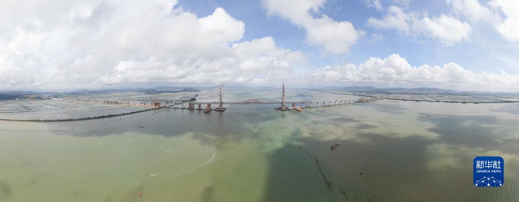这是6月30日拍摄的由中铁大桥局承建的广东汕头牛田洋特大桥(无人机照片)。