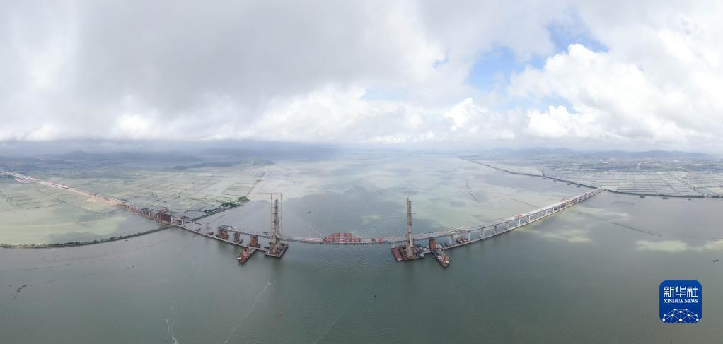 这是6月30日拍摄的由中铁大桥局承建的广东汕头牛田洋特大桥(无人机照片)。