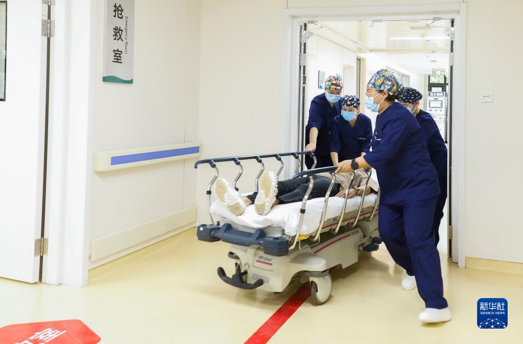 6月30日,医护人员在改造后的急诊科内进行实战演练。