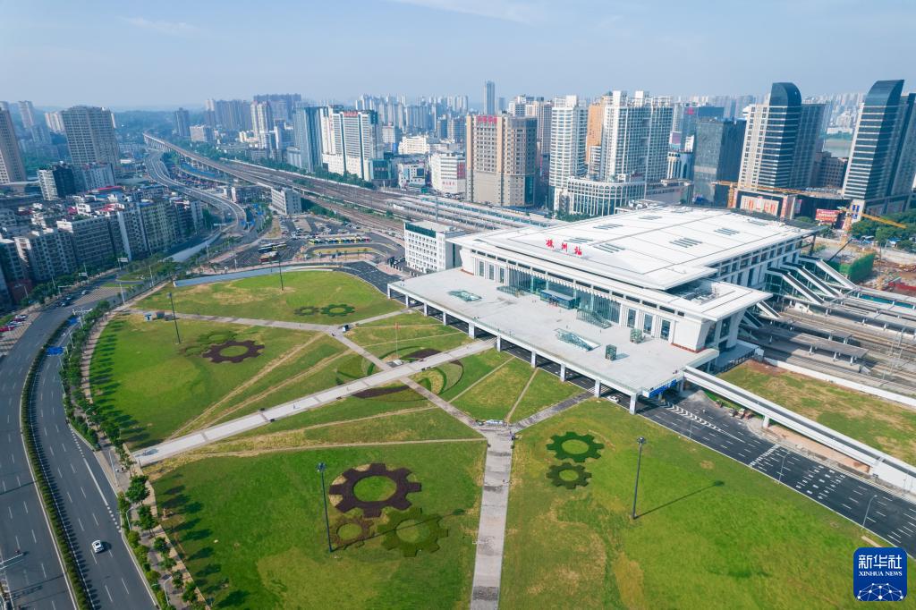 7月1日拍摄的改扩建完工的株洲火车站东站房(无人机照片)。